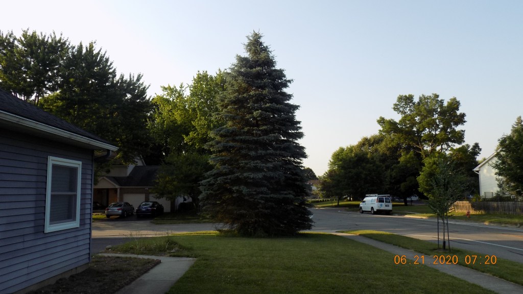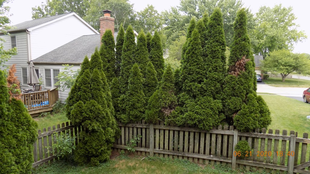 In a previous post, I have discussed some of the home improvement projects that have been completed since the beginning of this year, including new windows and a new front door. In recent weeks, I have taken on re-waterproofing our deck (that project is almost finished) and helped get some new shelving installed in the garage. Earlier Today, a pretty dramatic change occurred on our property with the removal of a few trees. Here is a couple of before shots: