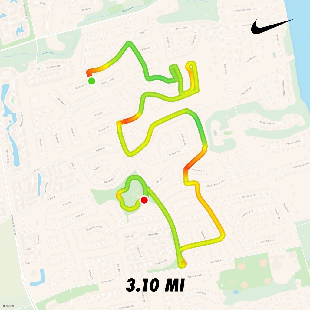 My first 5K race (a virtual one) is now officially in the books. Earlier today I ran this race in a time of 46:22. Not bad for my first 5K, and with some more practice, that time should improve. I will be posting the stats from today’s run on the Fitness Results page shortly. In the meantime, here is the route that I took for today’s race: